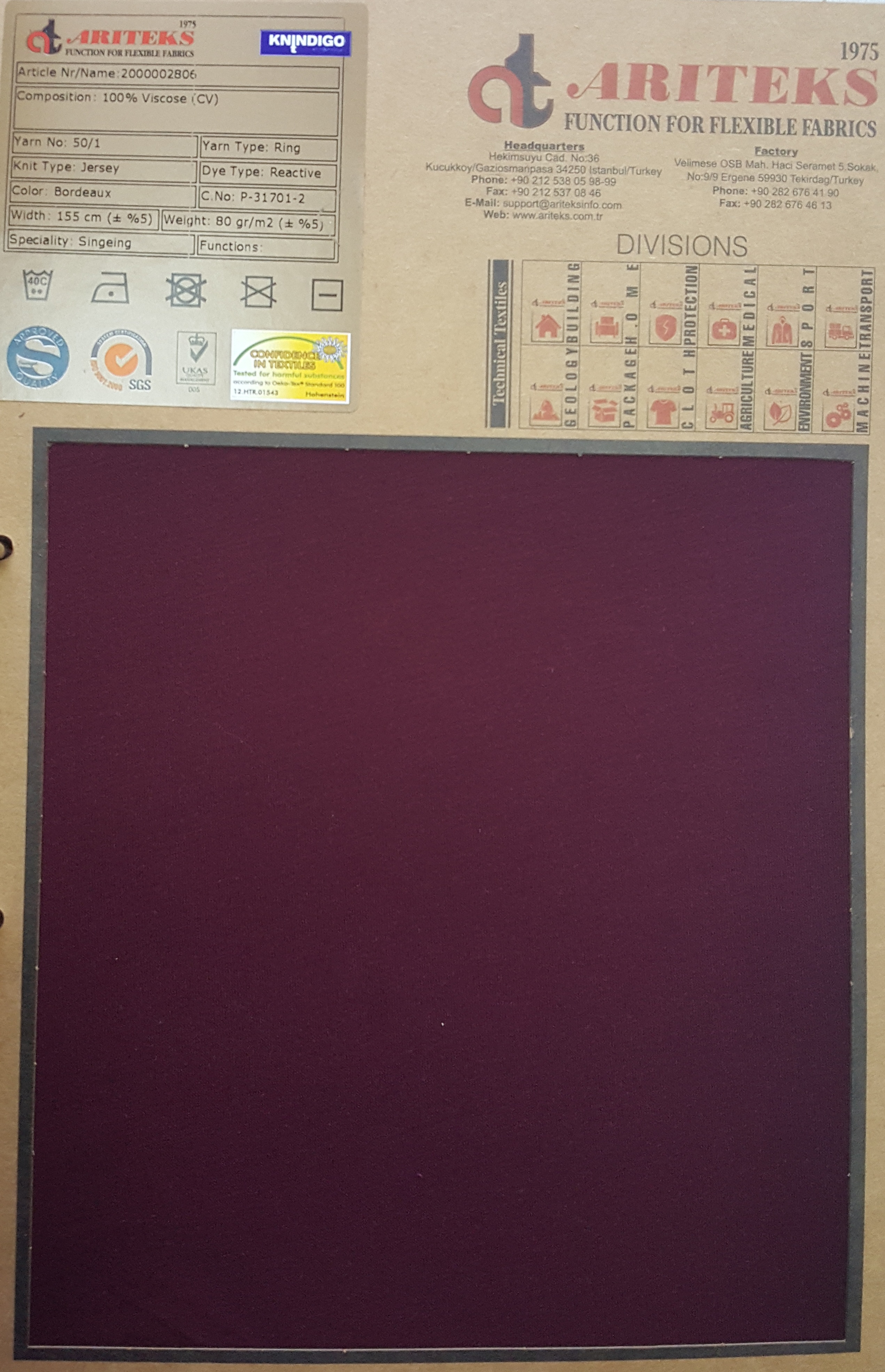 100% cotton from best ringspun yarn knit fabrics, plain dyed