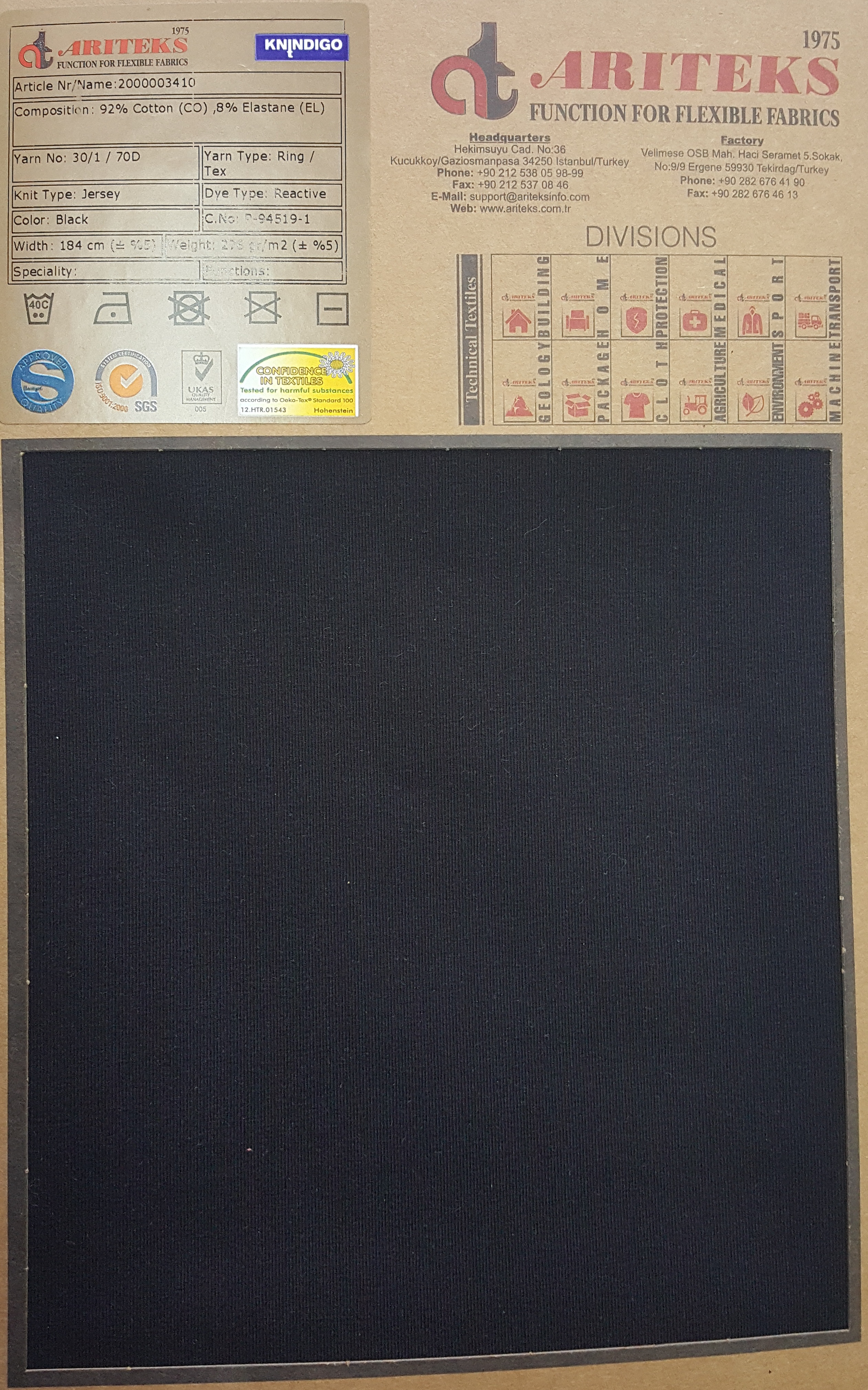 Cotton elastane sulfur dyed knit fabrics