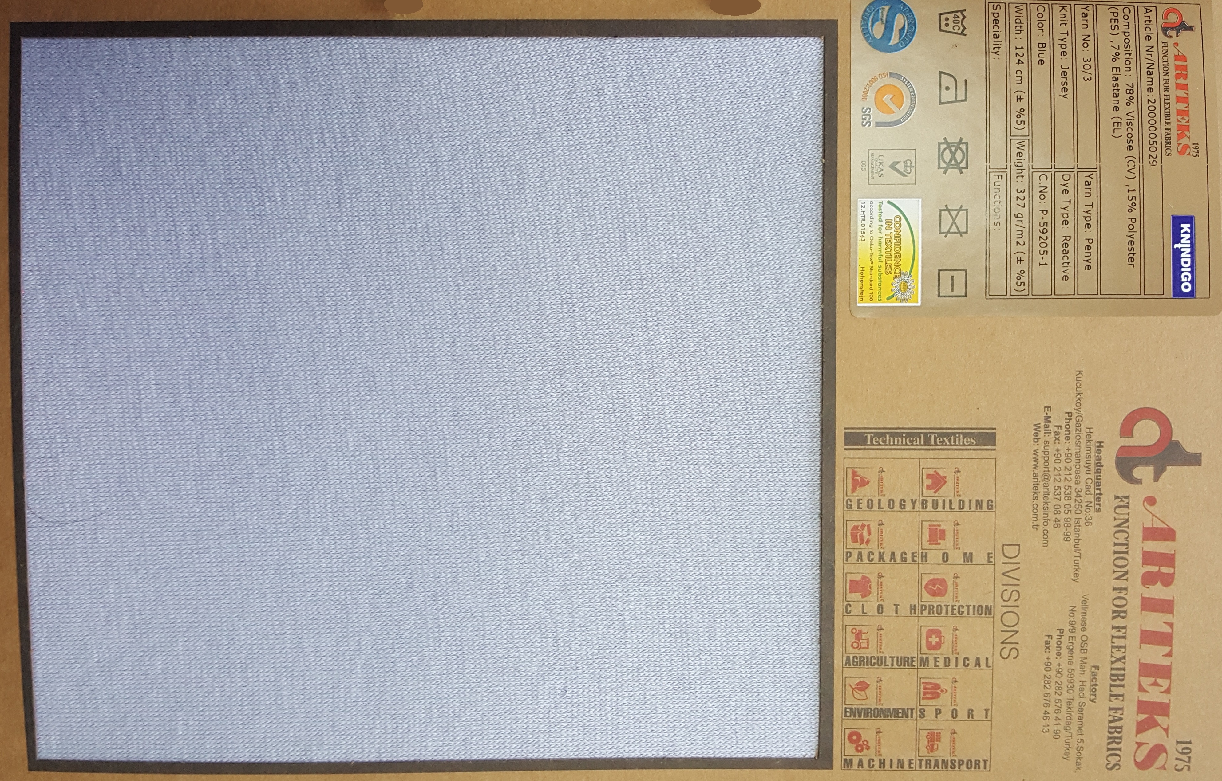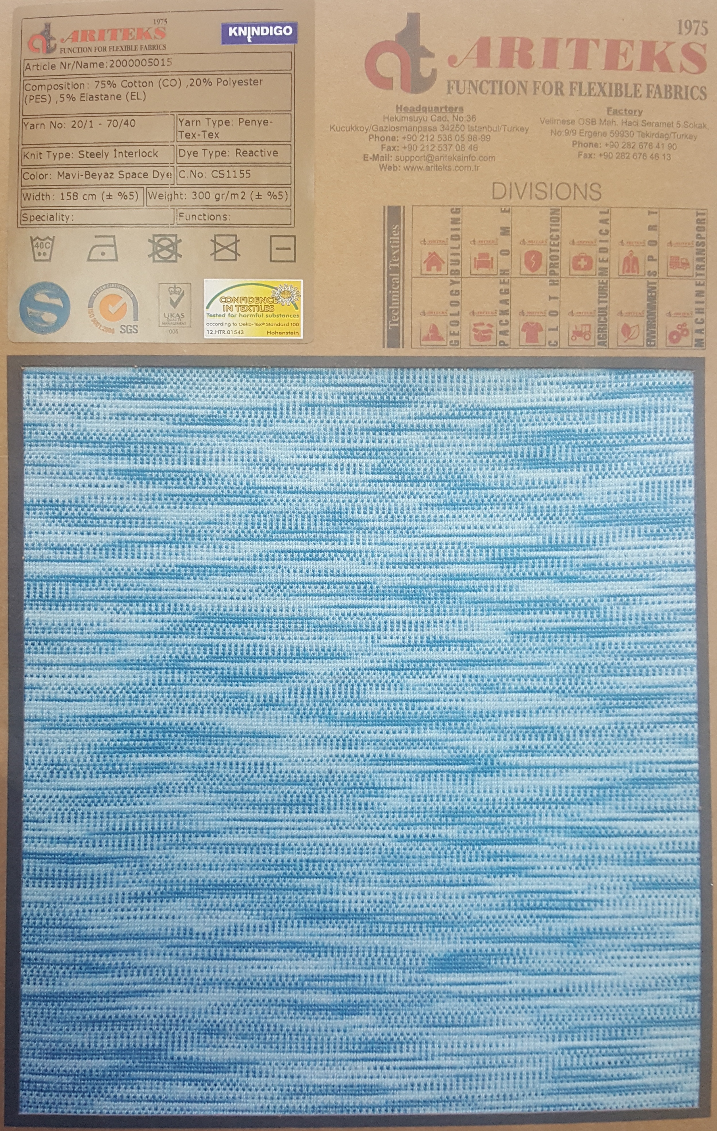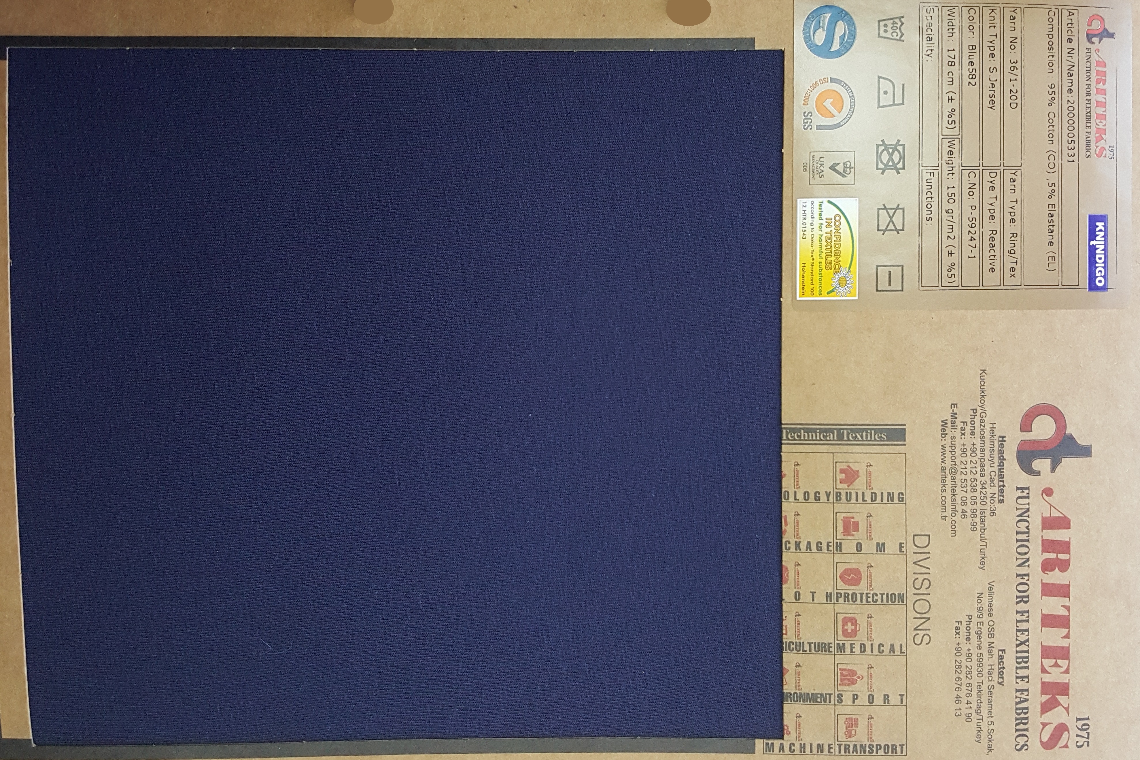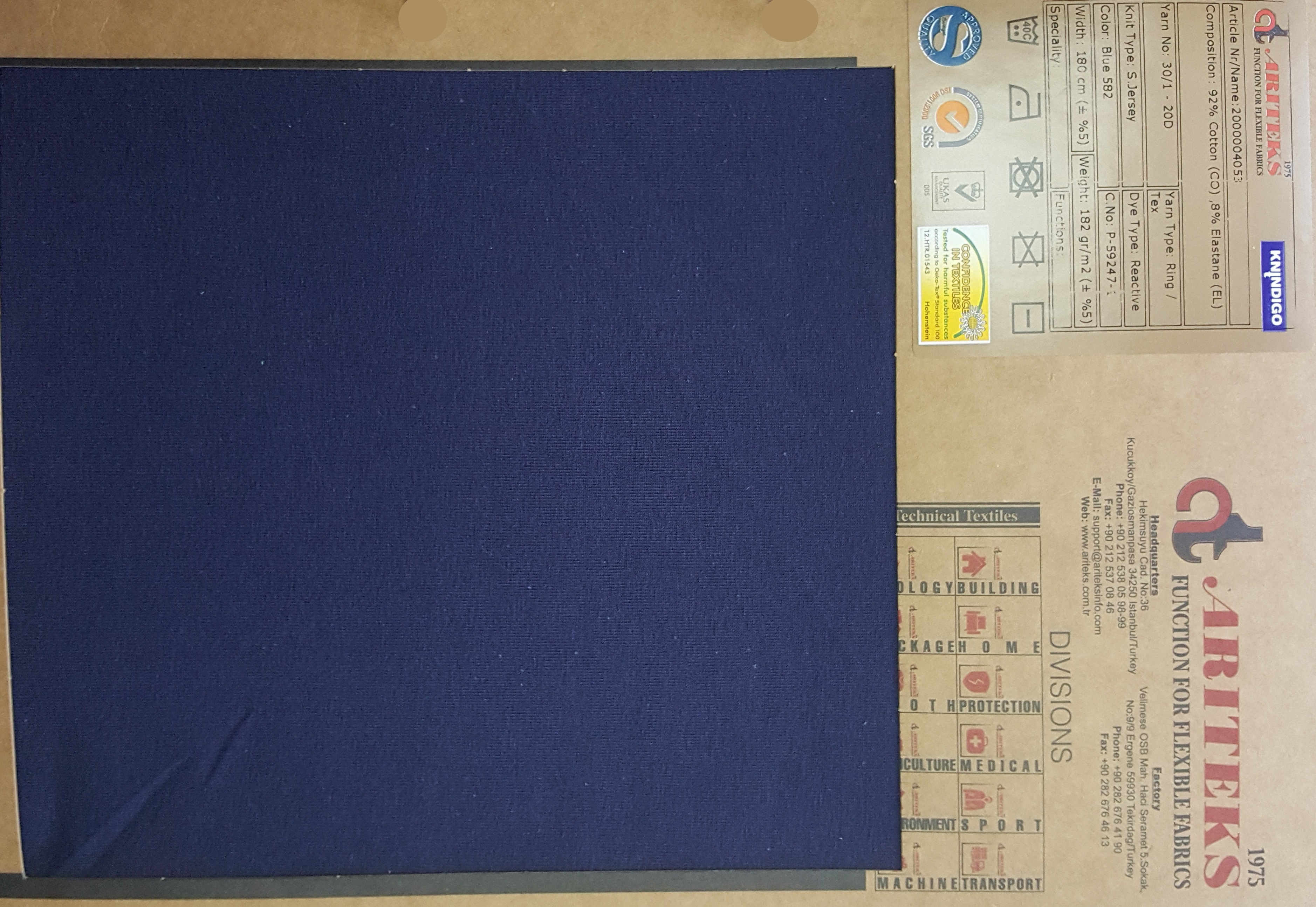 Cotton elastane indigo dyed knit fabrics
