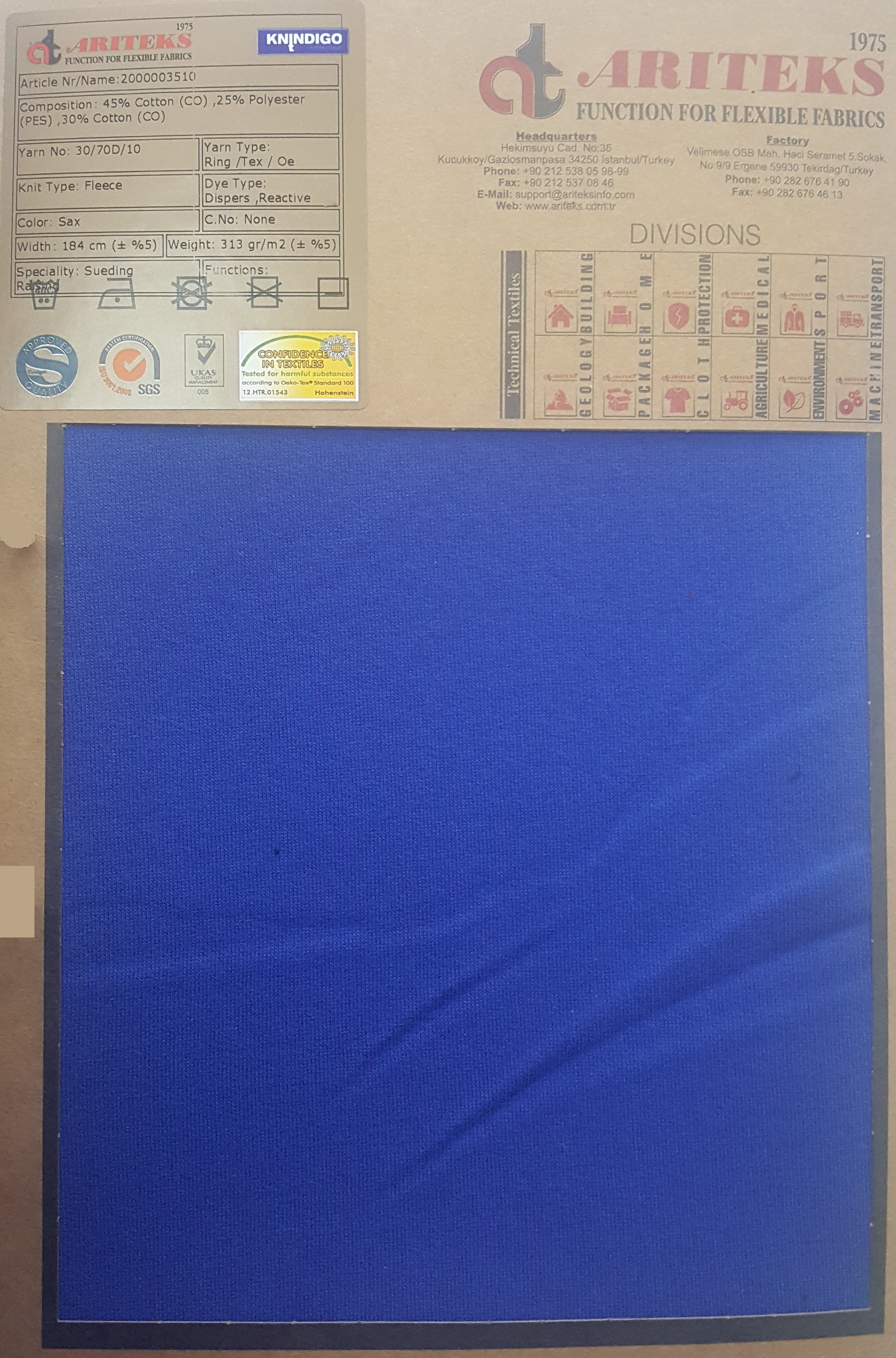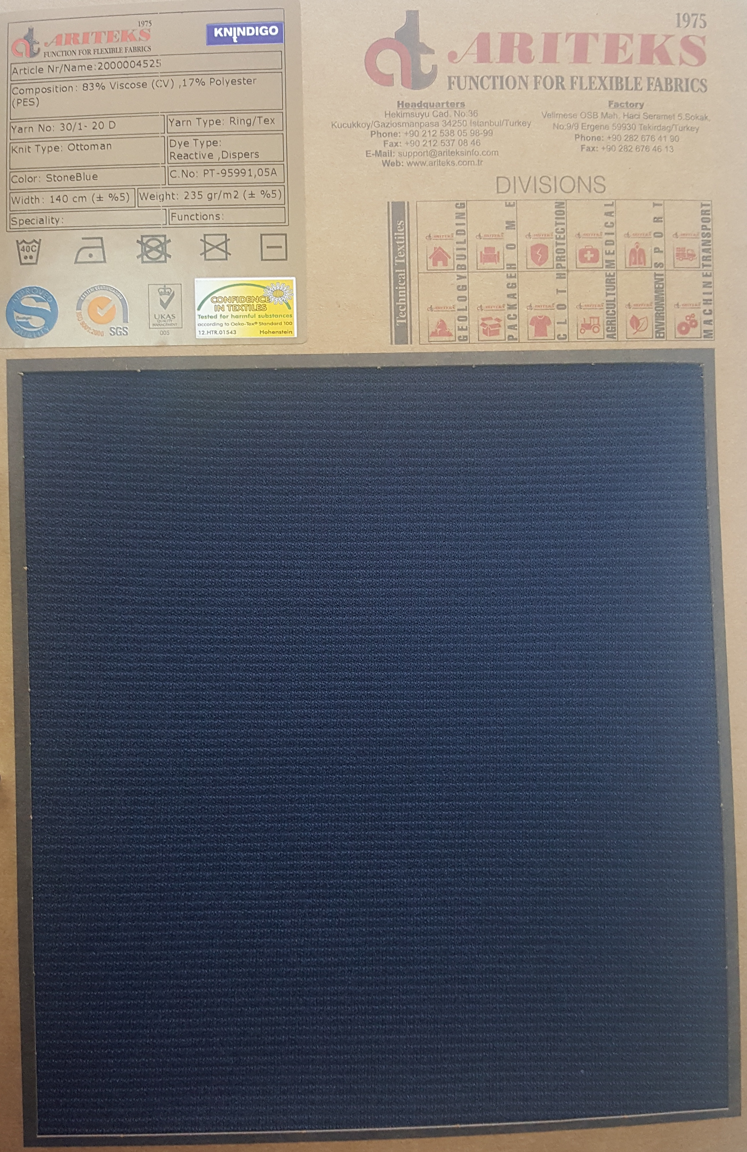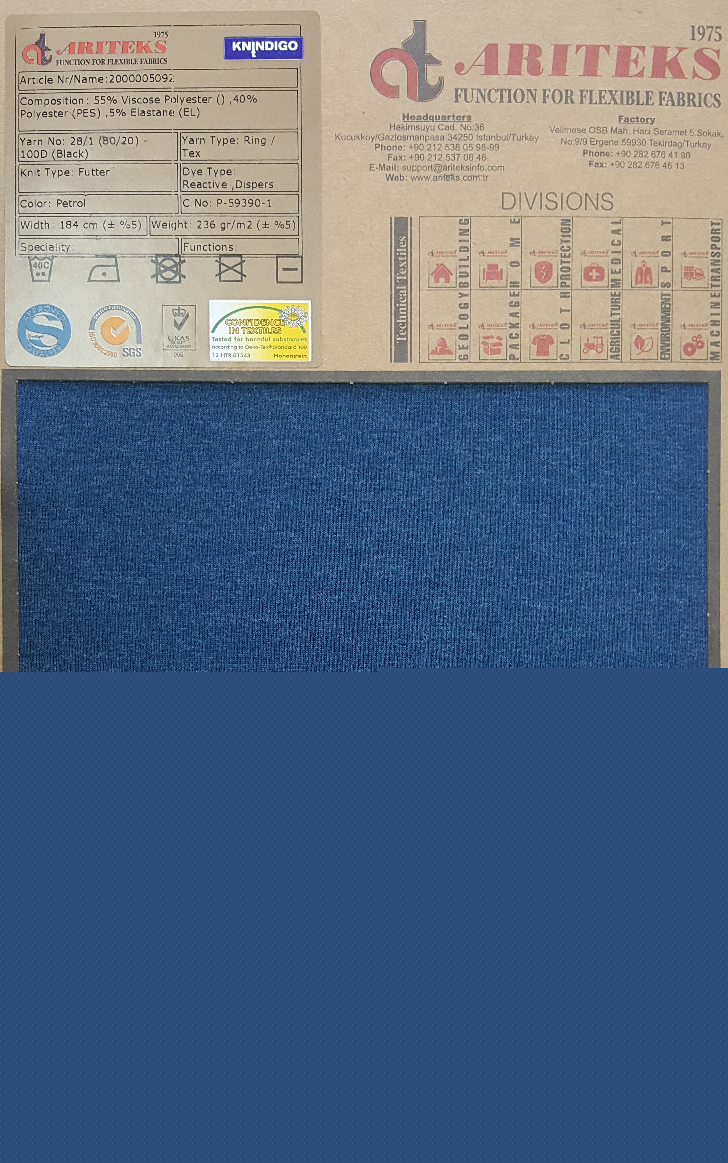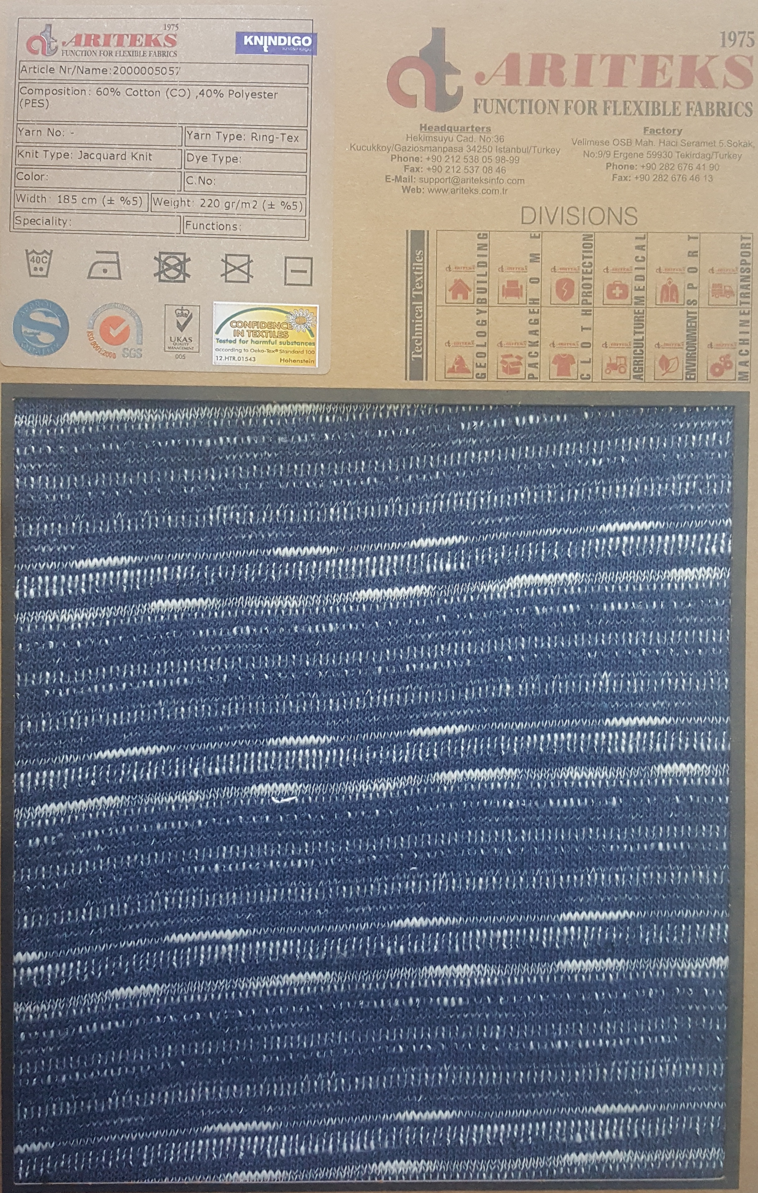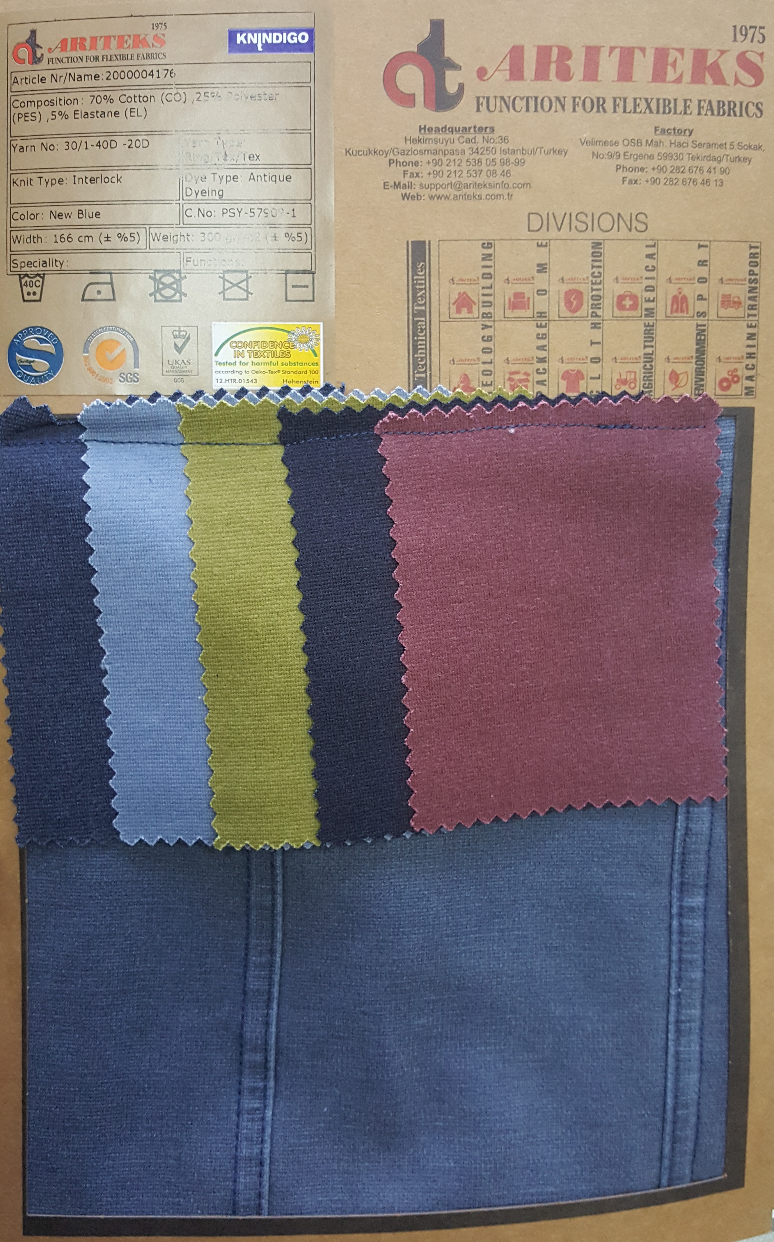 Cotton elastane indigo dyed knit fabrics