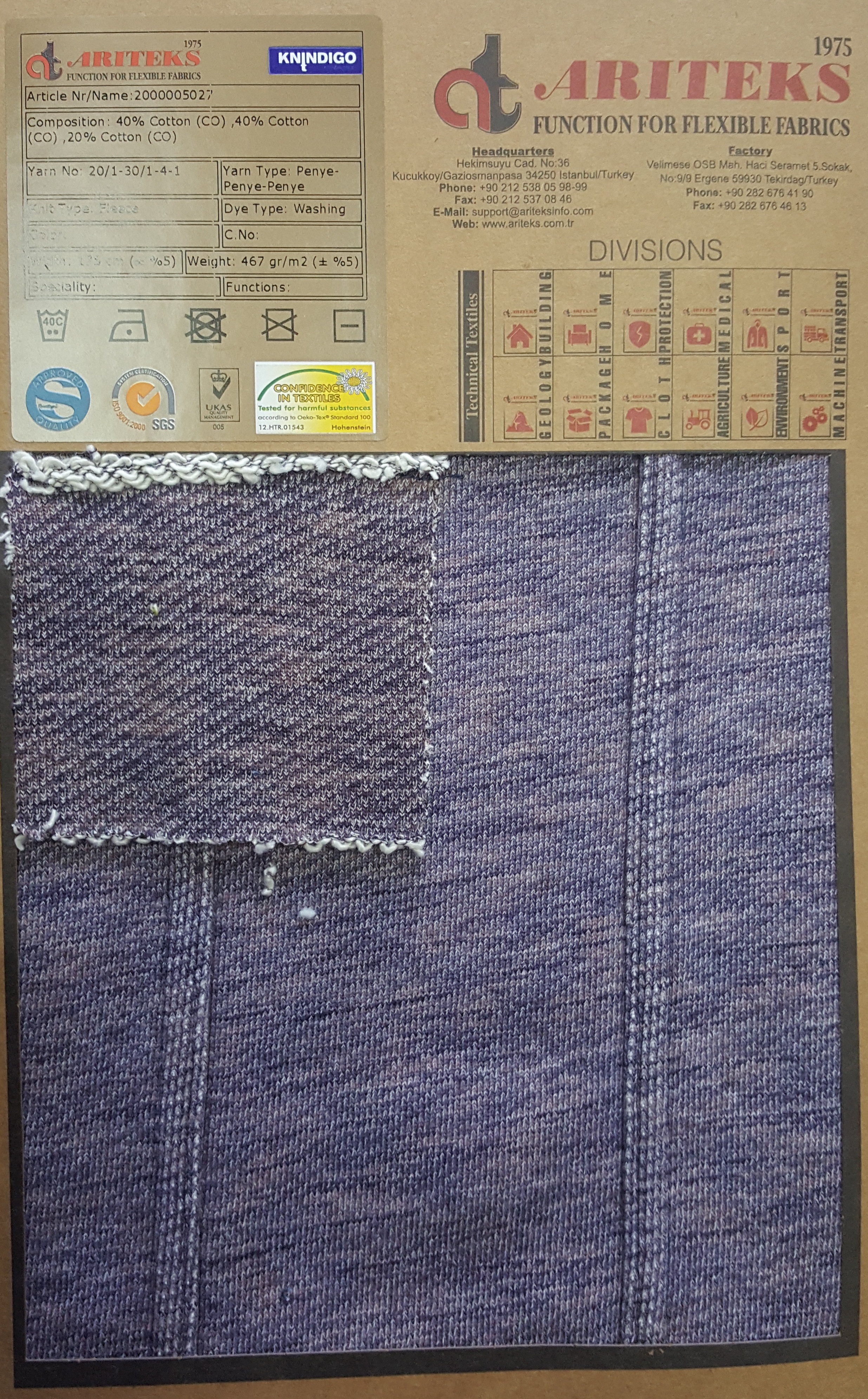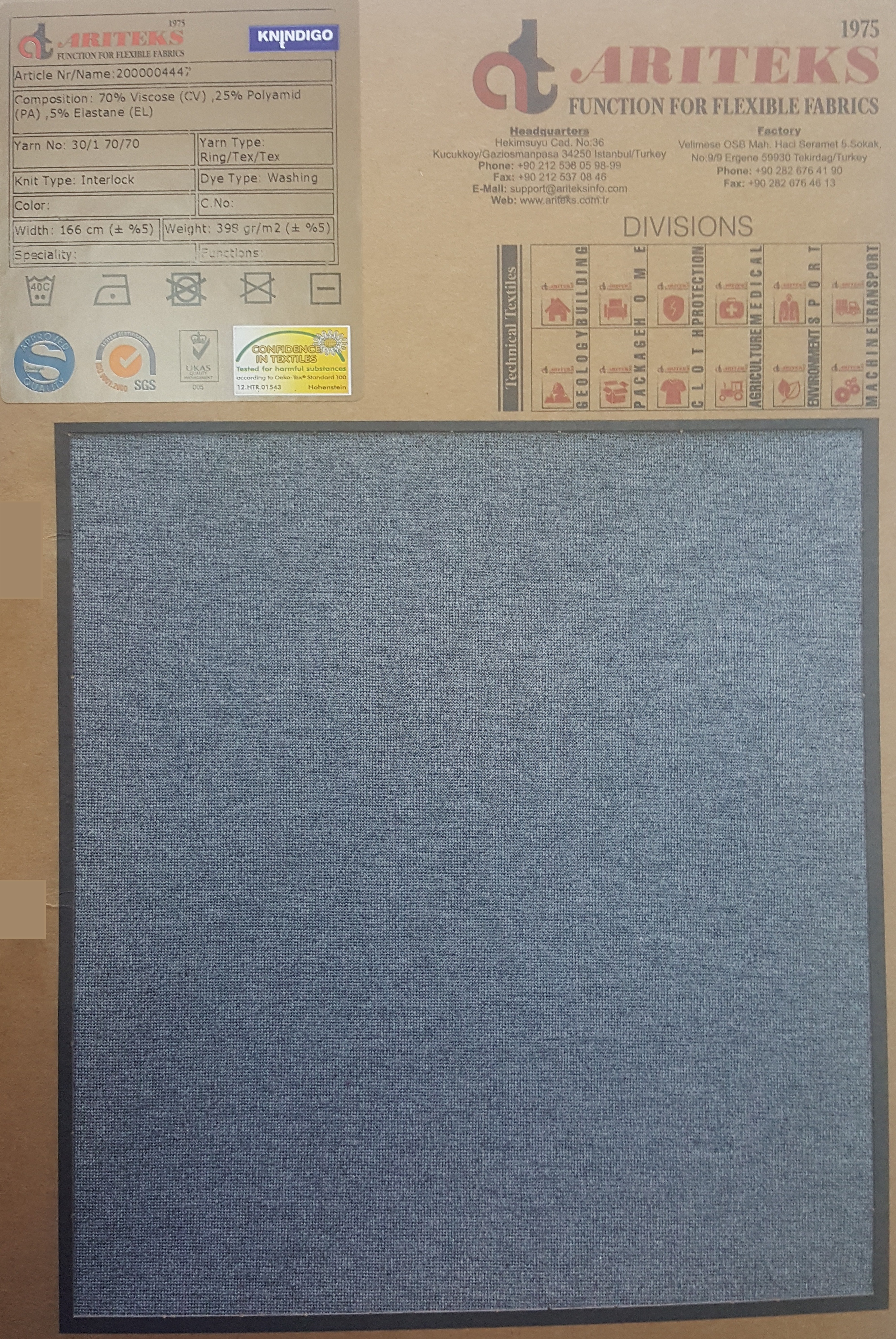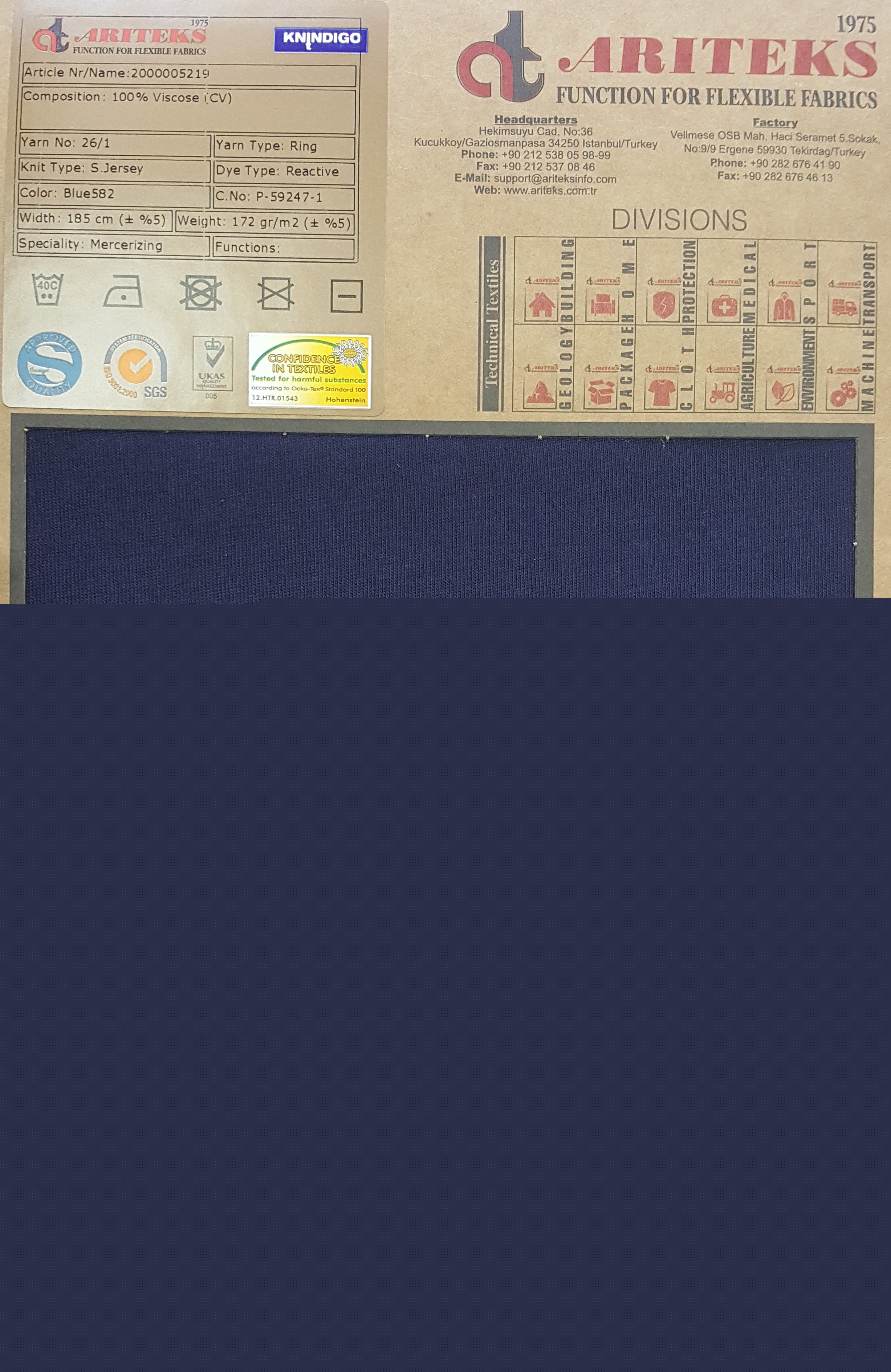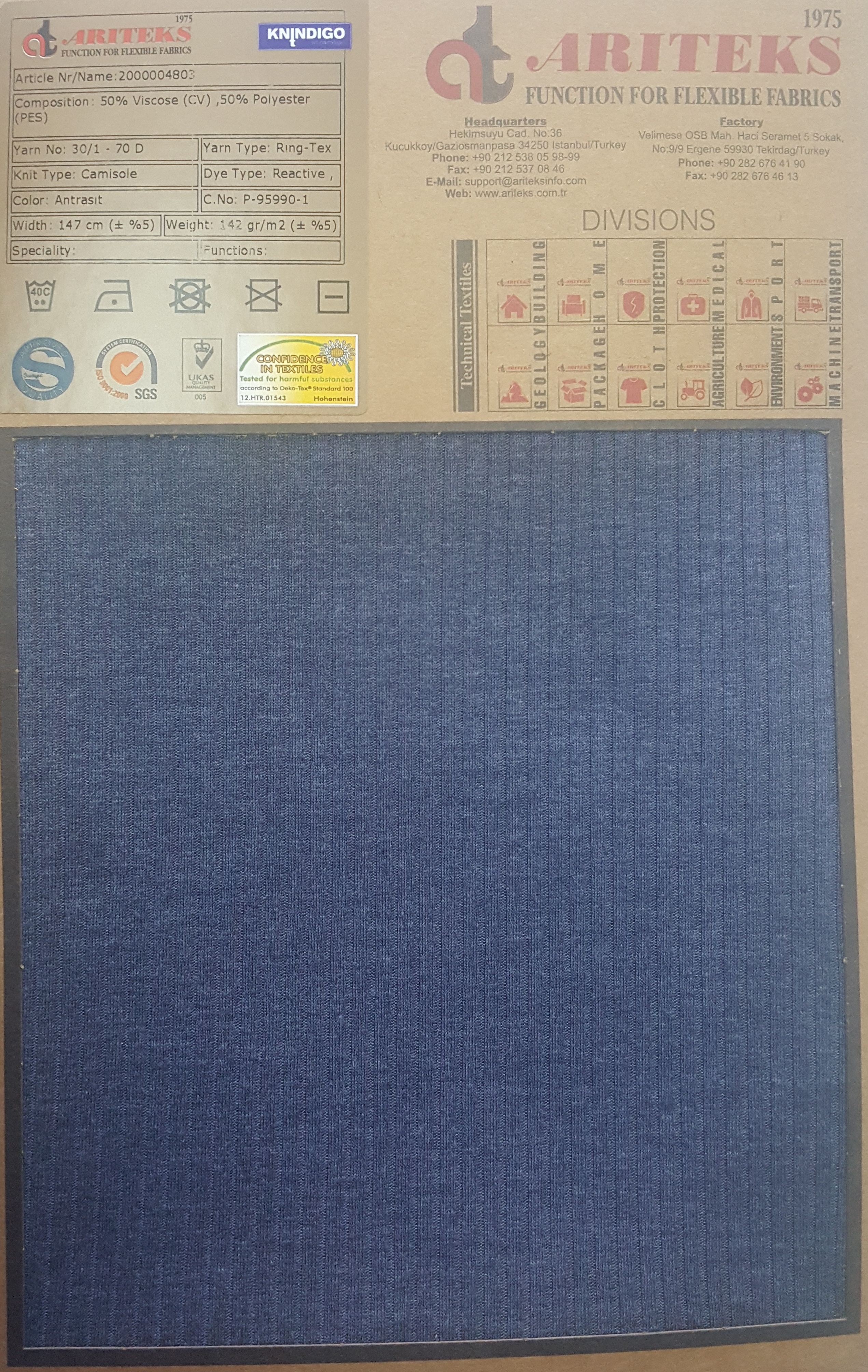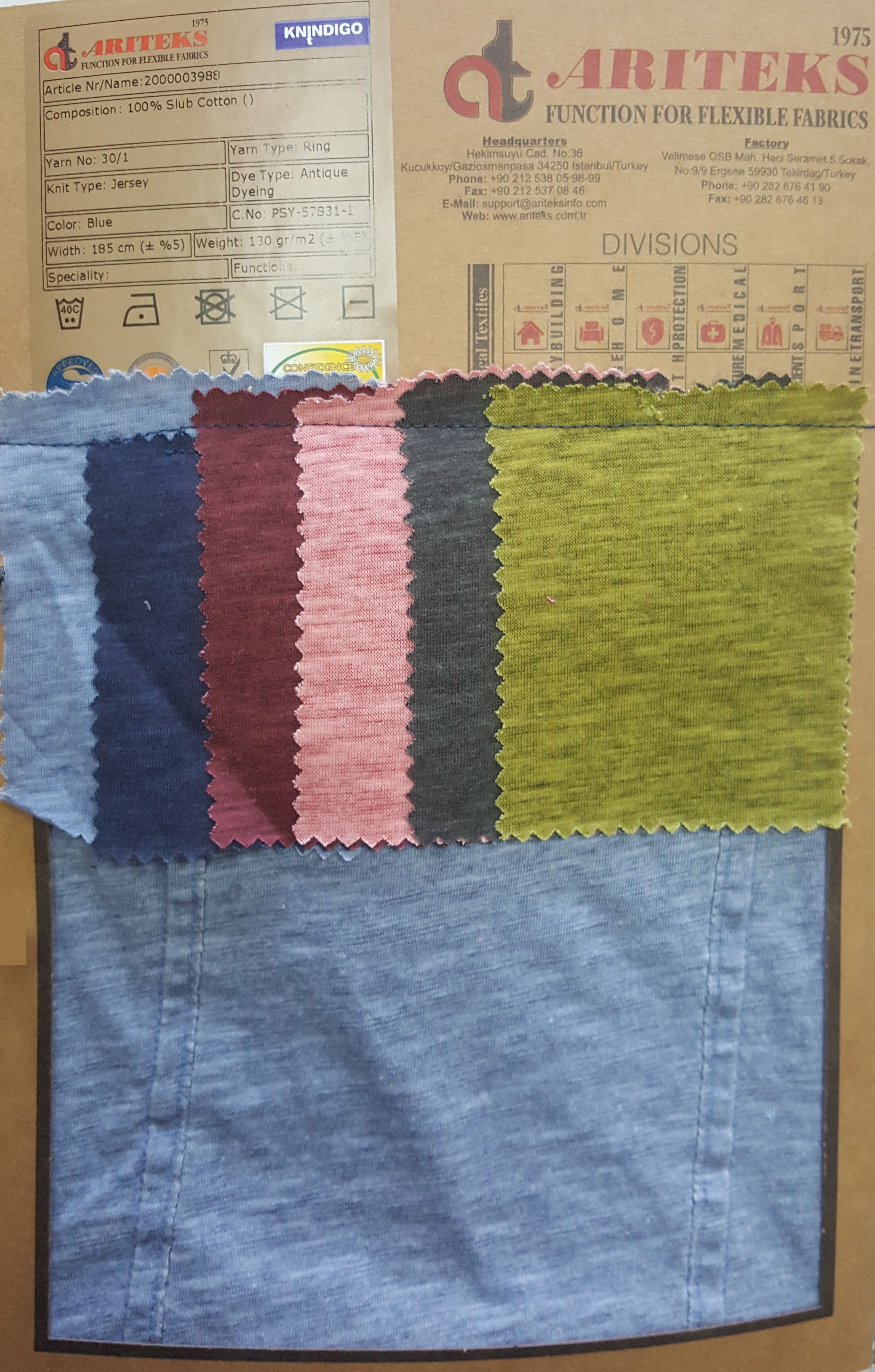 100% cotton indigo dyed knit fabrics