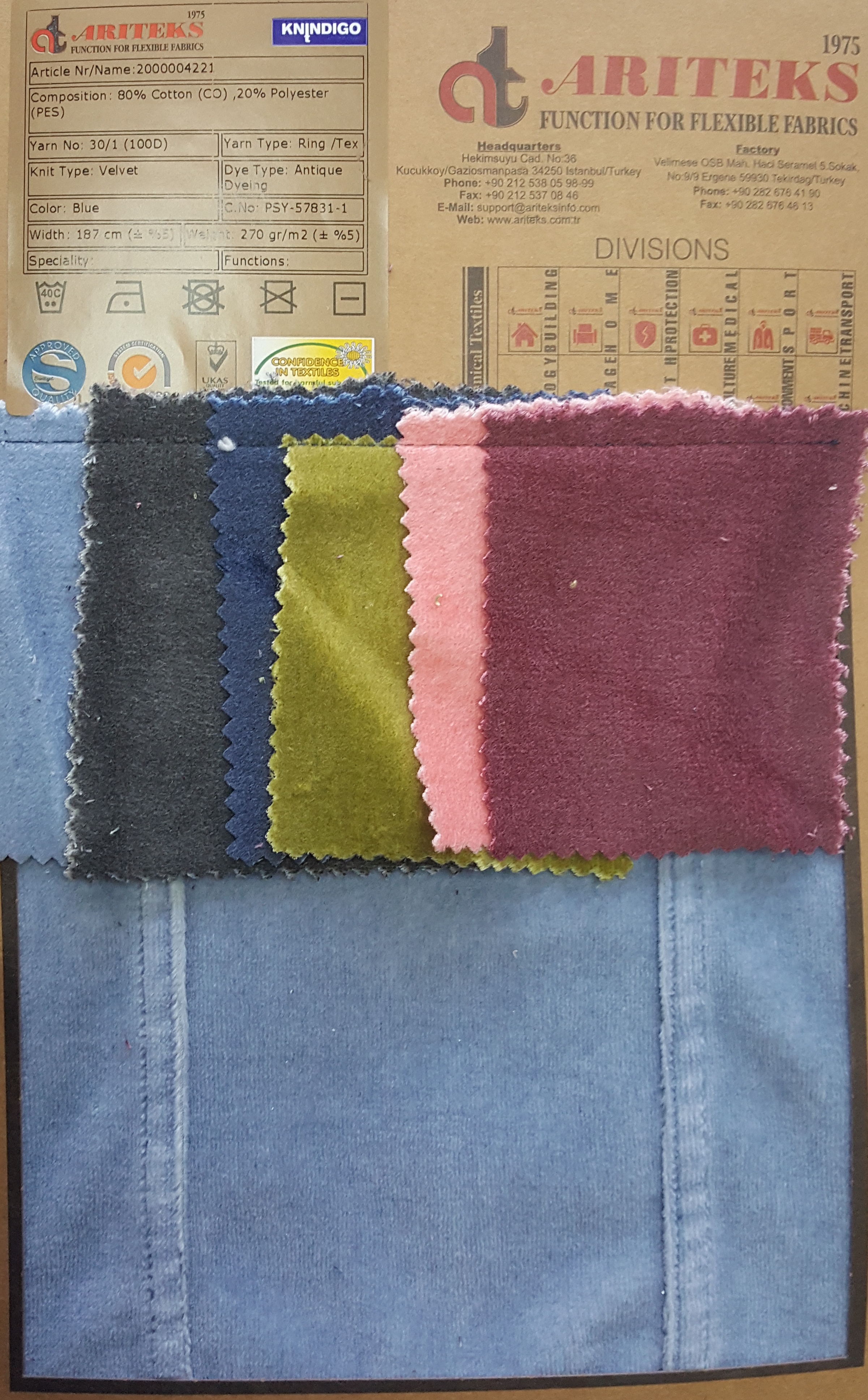 Cotton or Cotton/Polyester velvet knit fabrics.