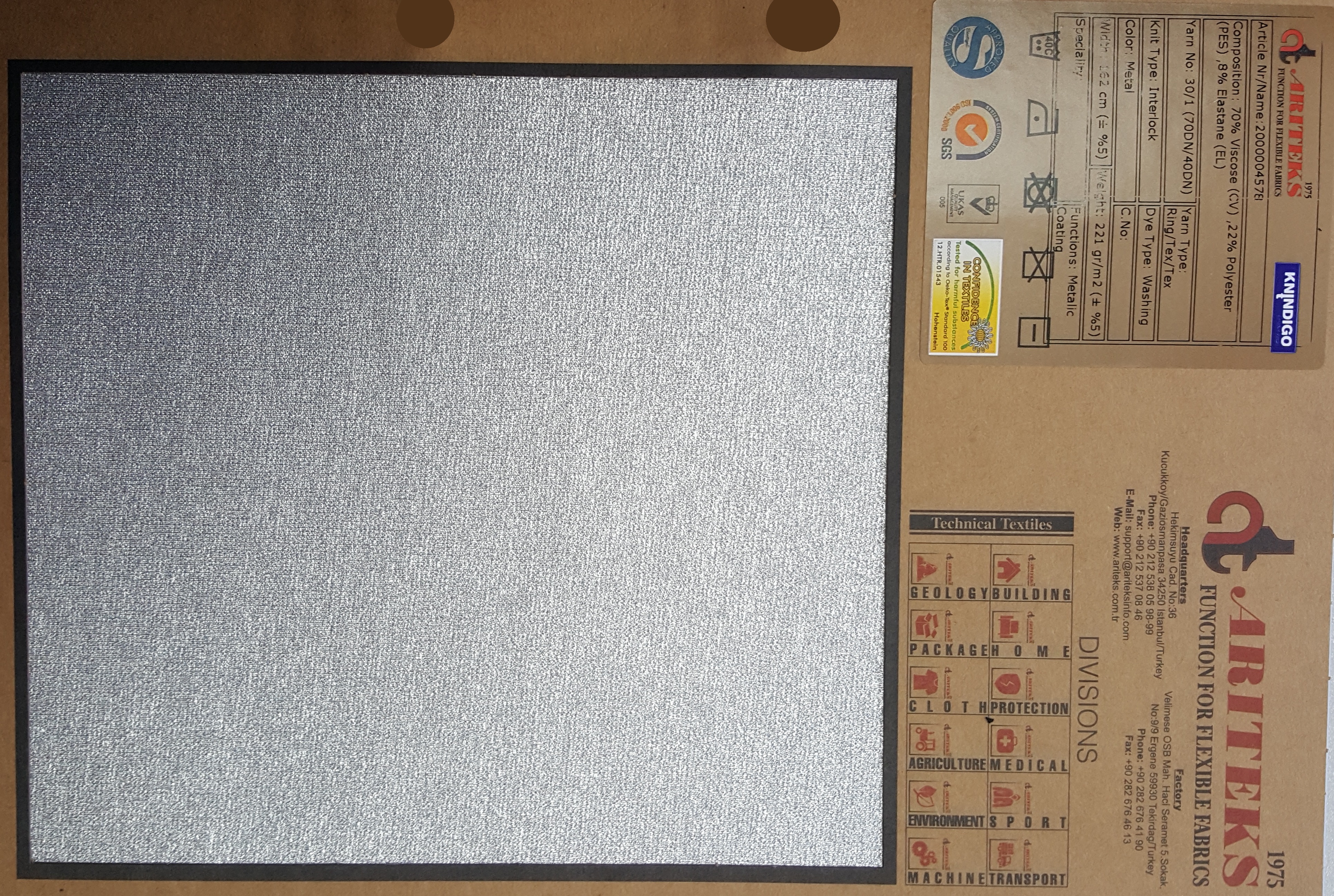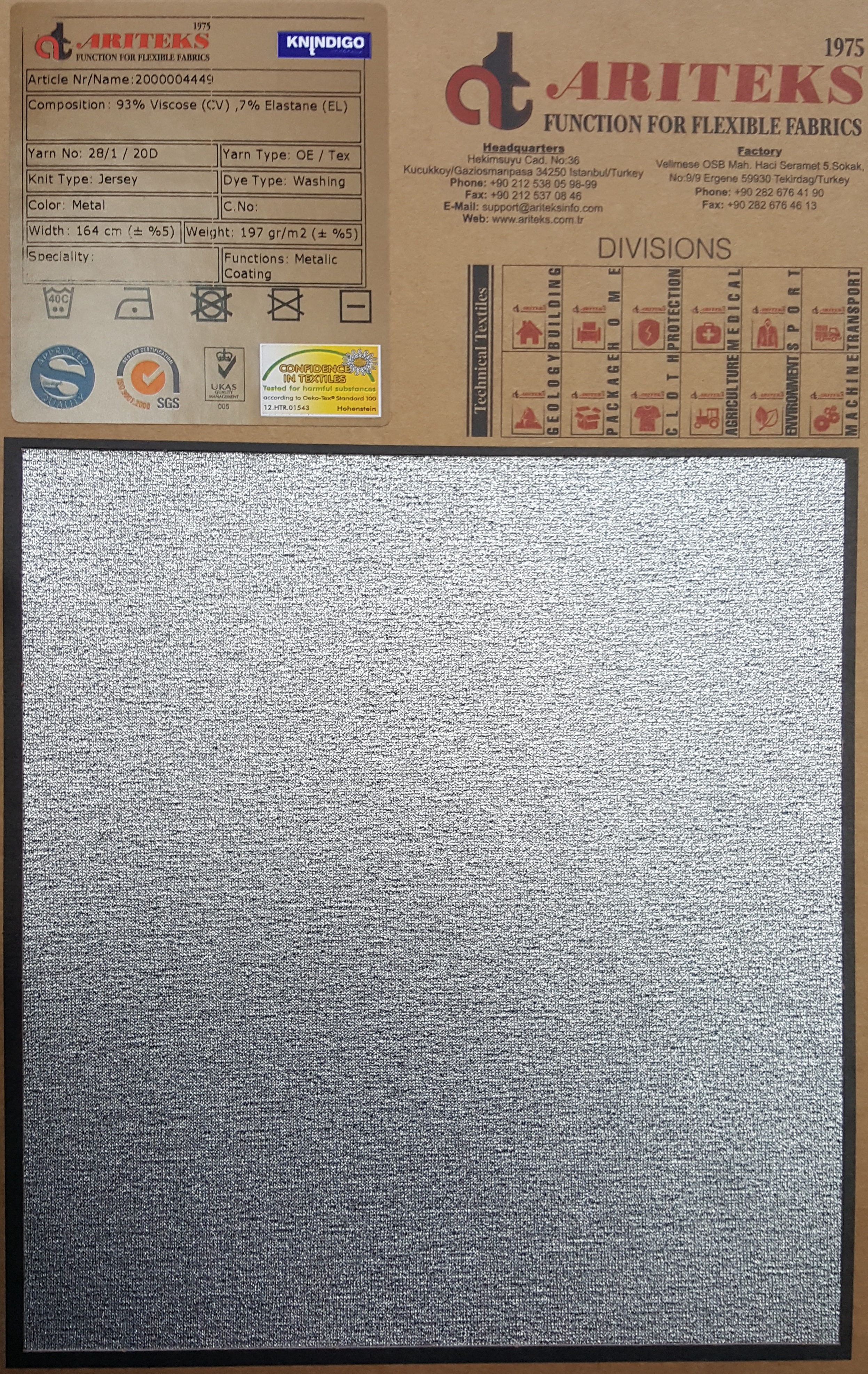 Cotton, viscose, linen, polyester, polyamide and other knit fabrics metallic coated.
