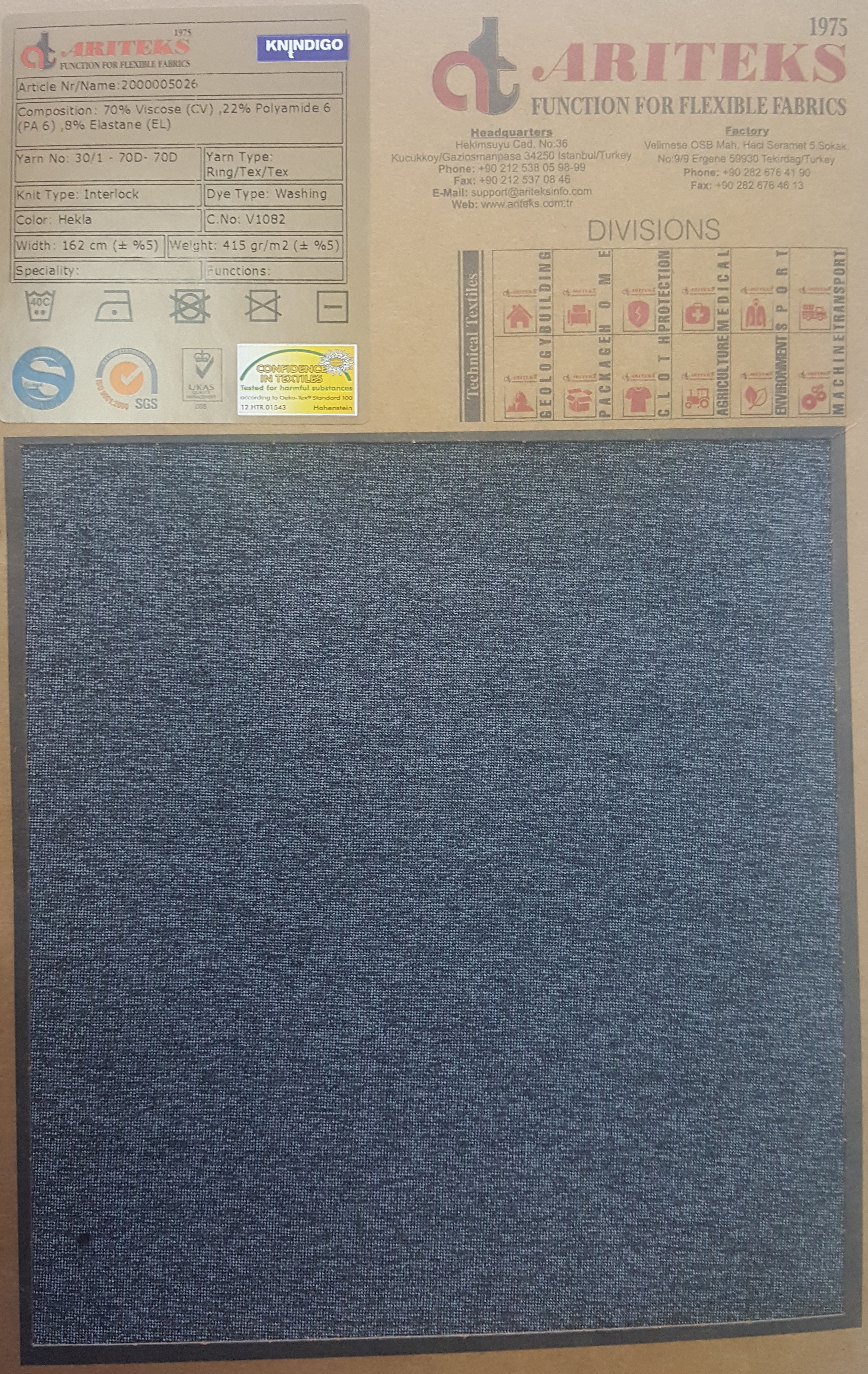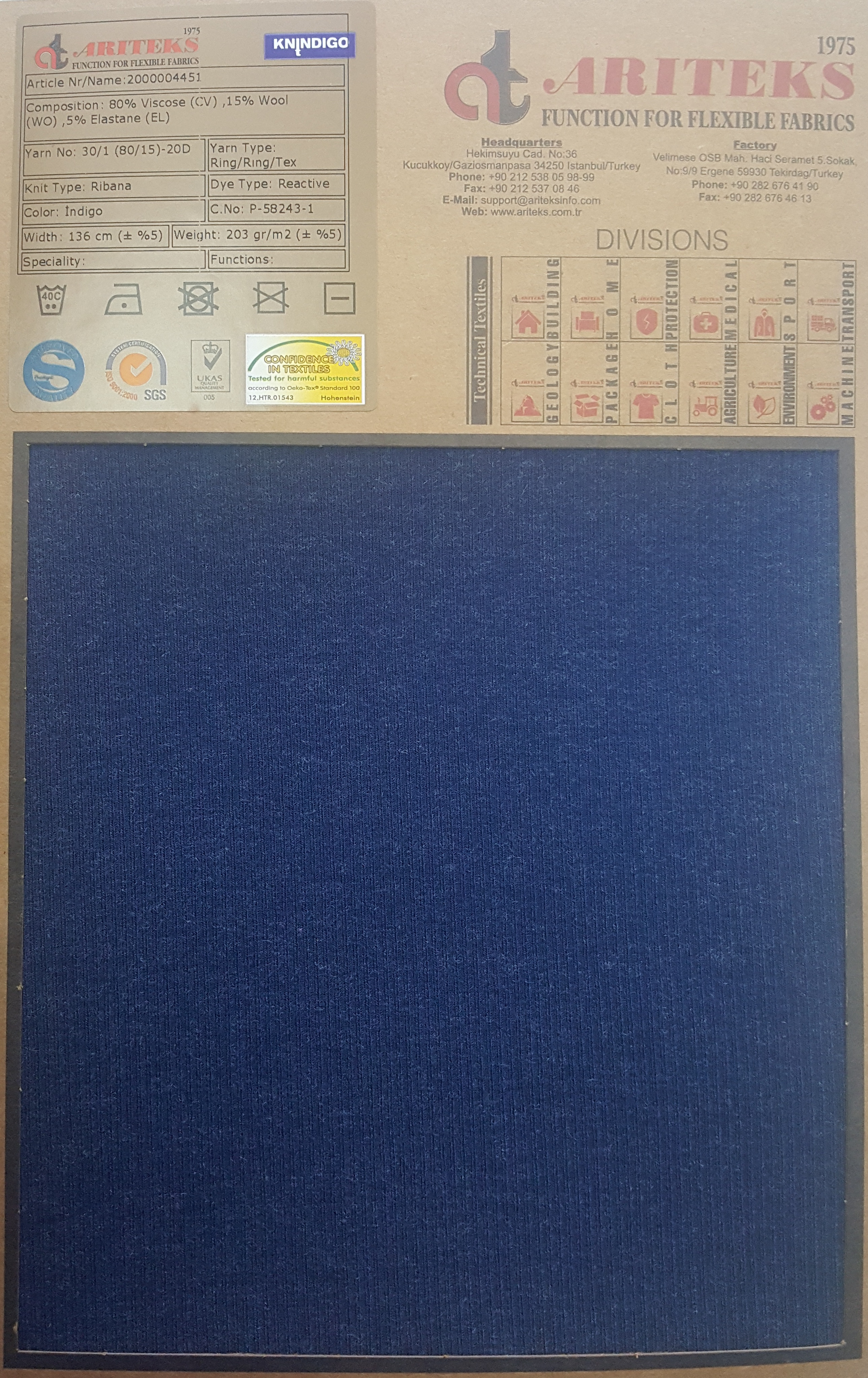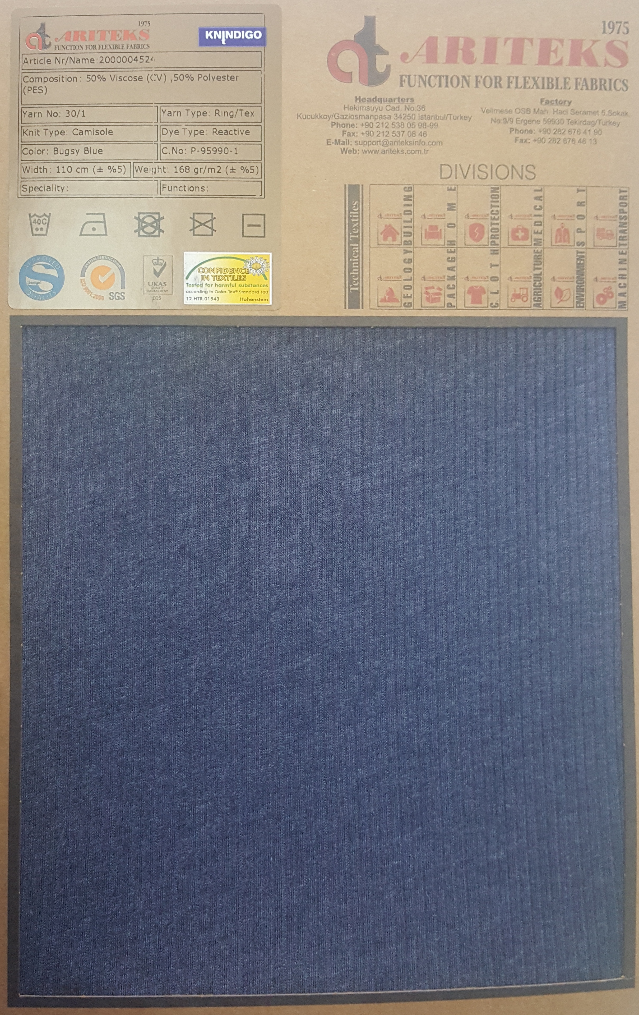 Viscose elastane indigo dyed knit fabrics
