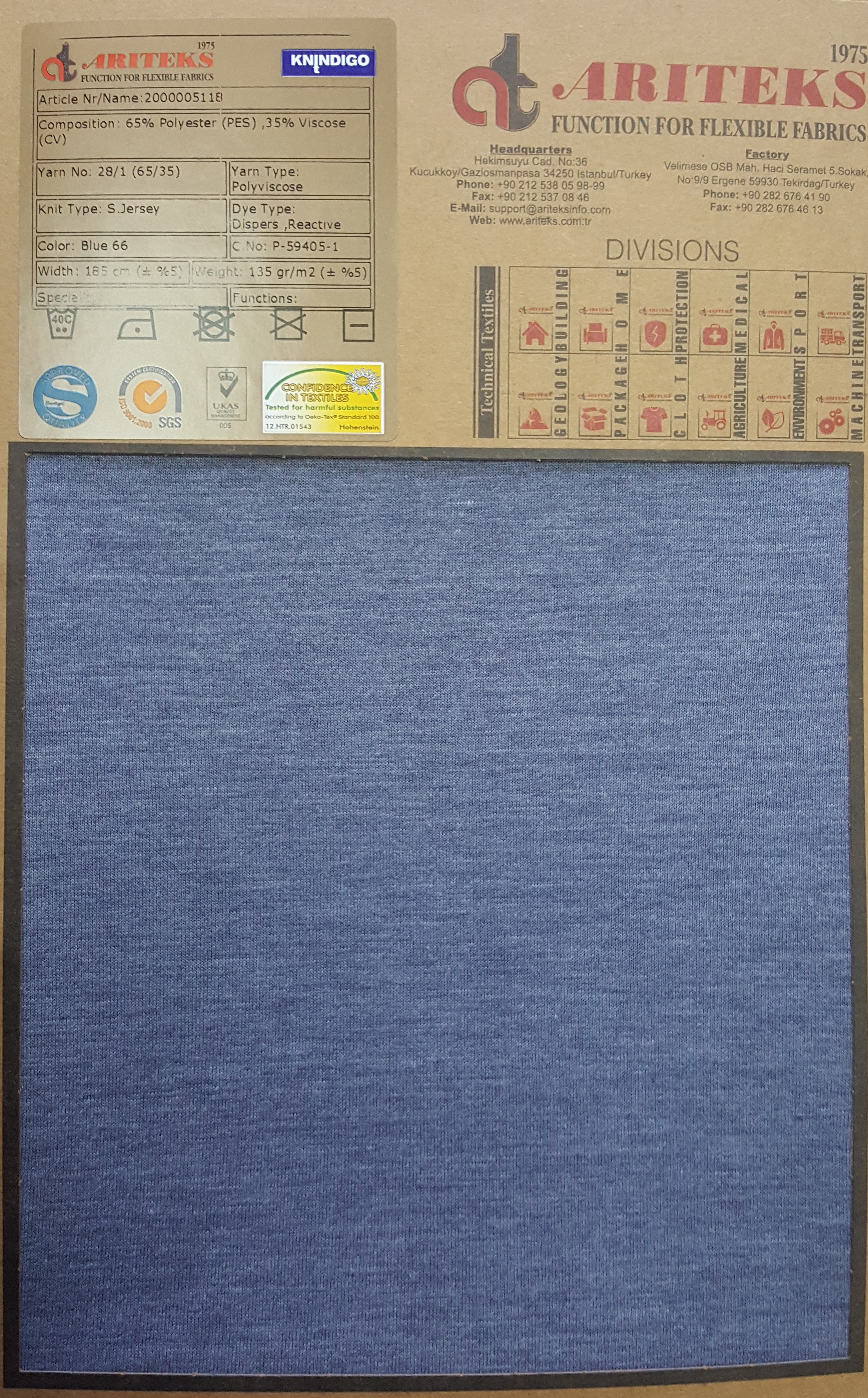 Cotton polyester indigo dyed fabrics