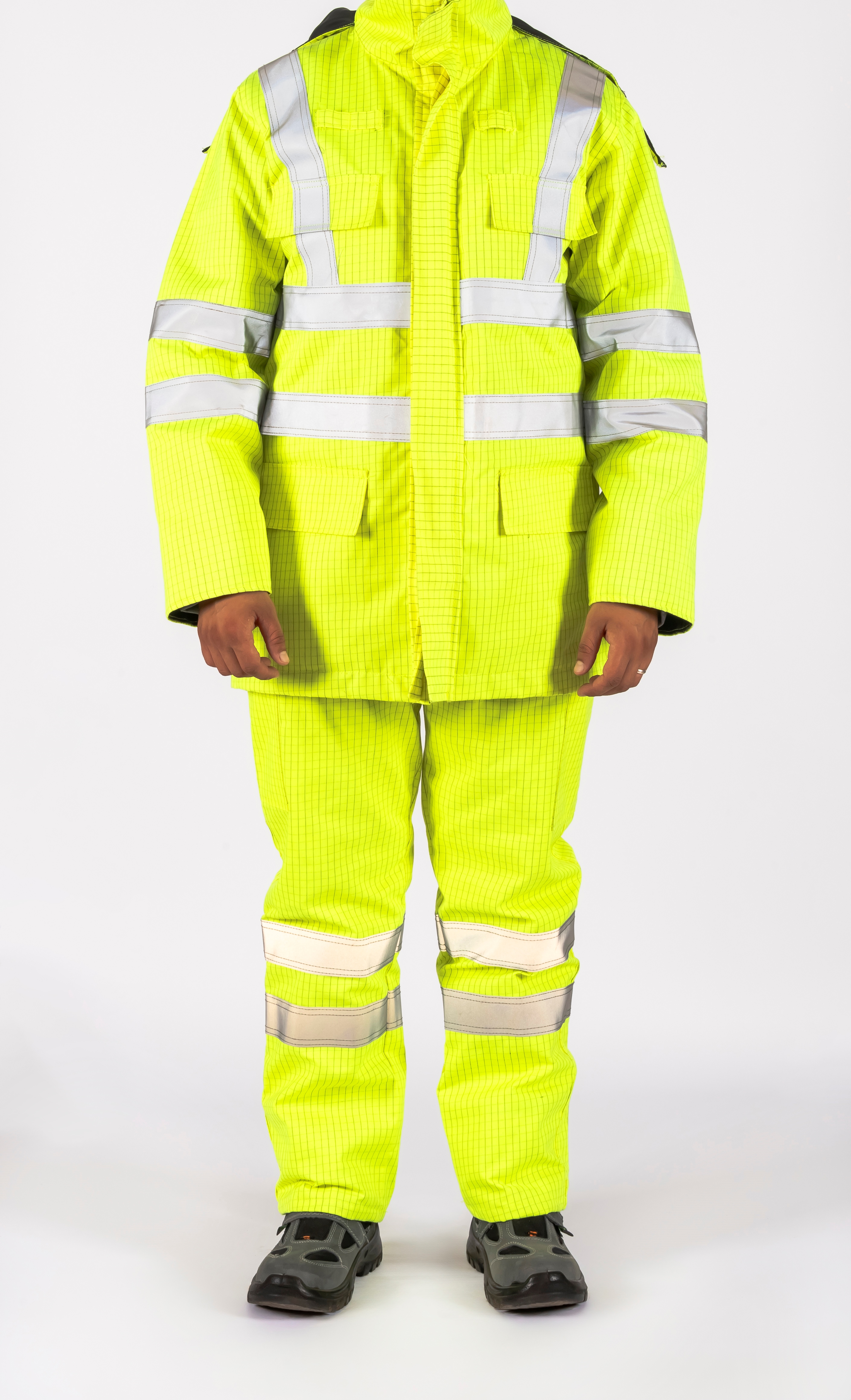 | 250 gr/m2, 75% Polyester 23% Polyurethane 2% Carbon, Inherent Flame Retardant, Antistatic, Waterproof, Breathable, High Visible, 1/1 Plain Woven Fabric | ||